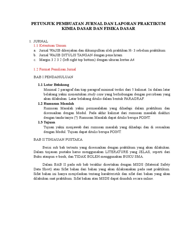 Petunjuk Pembuatan Jurnal Dan Laporan Praktikum Kd Dan Fd Pdf